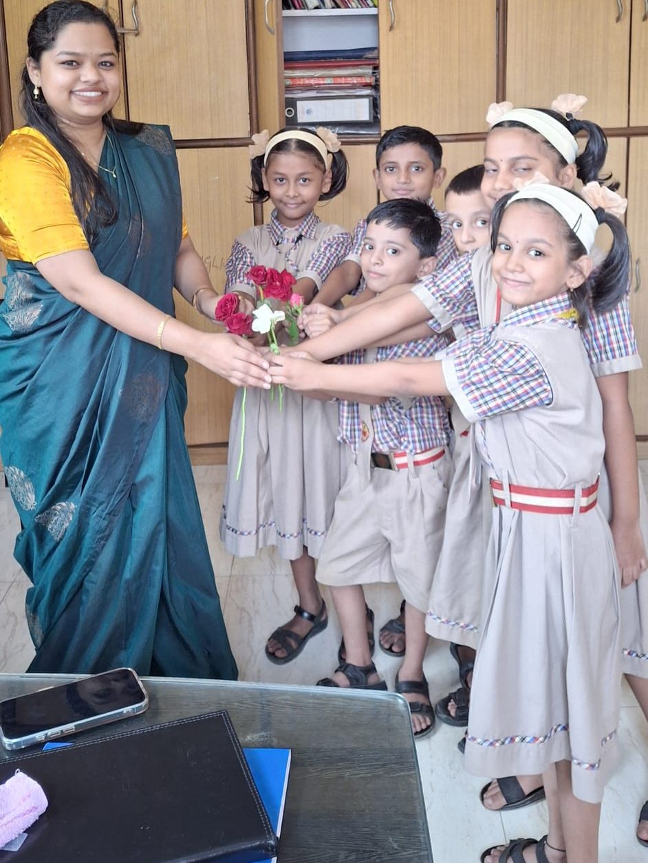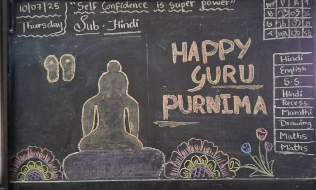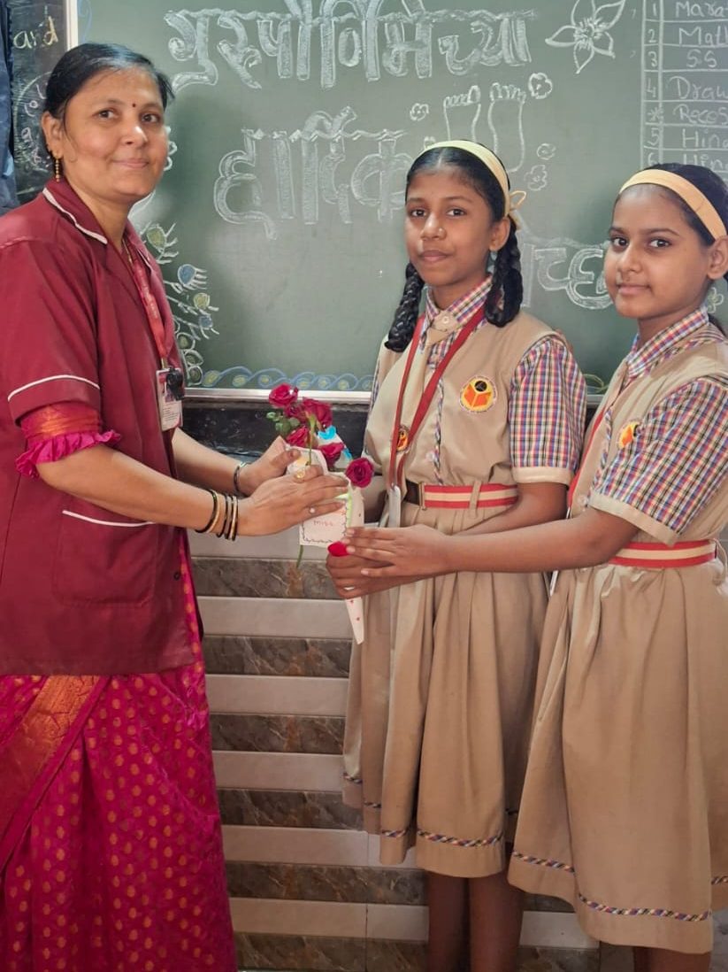 Guru Purnima was celebrated with great respect and joy. Students expressed their gratitude towards teachers by presenting them with roses, singing songs, and reciting poems dedicated to gurus. Some students also came forward to share their views on the importance of teachers in their lives. The atmosphere was filled with love, respect, and appreciation. The celebration concluded with teachers blessing the students and encouraging them to continue their journey of learning with dedication.