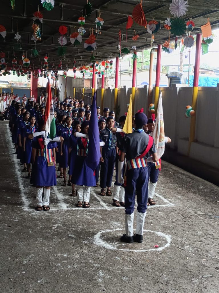 Our school celebrated Independence Day on 15th August with great enthusiasm and patriotic spirit. The programme began with the flag hoisting ceremony by our Chief guest, followed by the National Anthem sung by all. Students presented patriotic songs, dances, and skits highlighting the sacrifices of our freedom fighters. Inspiring speeches were delivered by teachers and students, reminding us of our duties towards the nation. The atmosphere was filled with pride and joy as the tricolor fluttered high. The programme concluded with a vote of thanks and distribution of sweets.