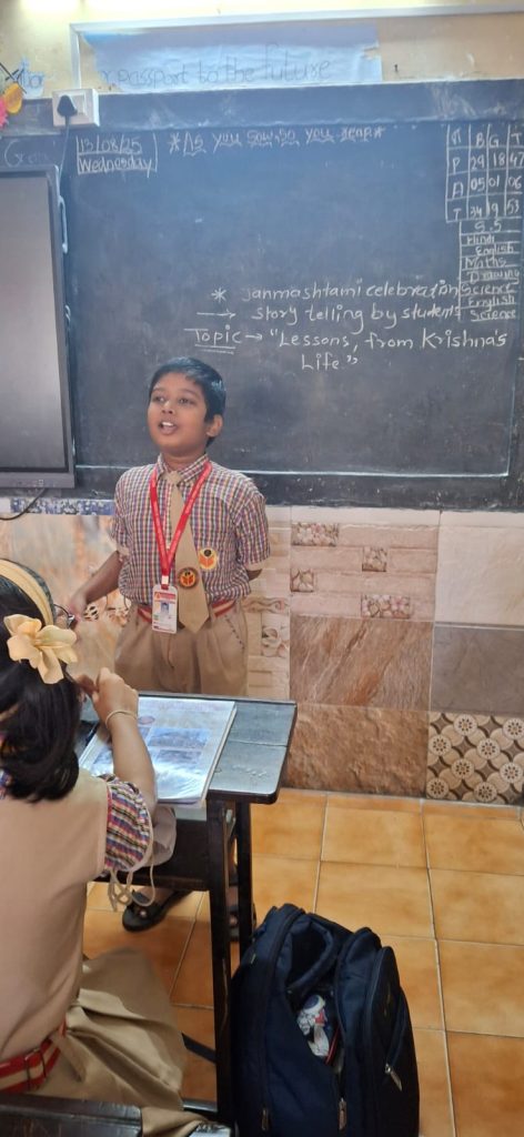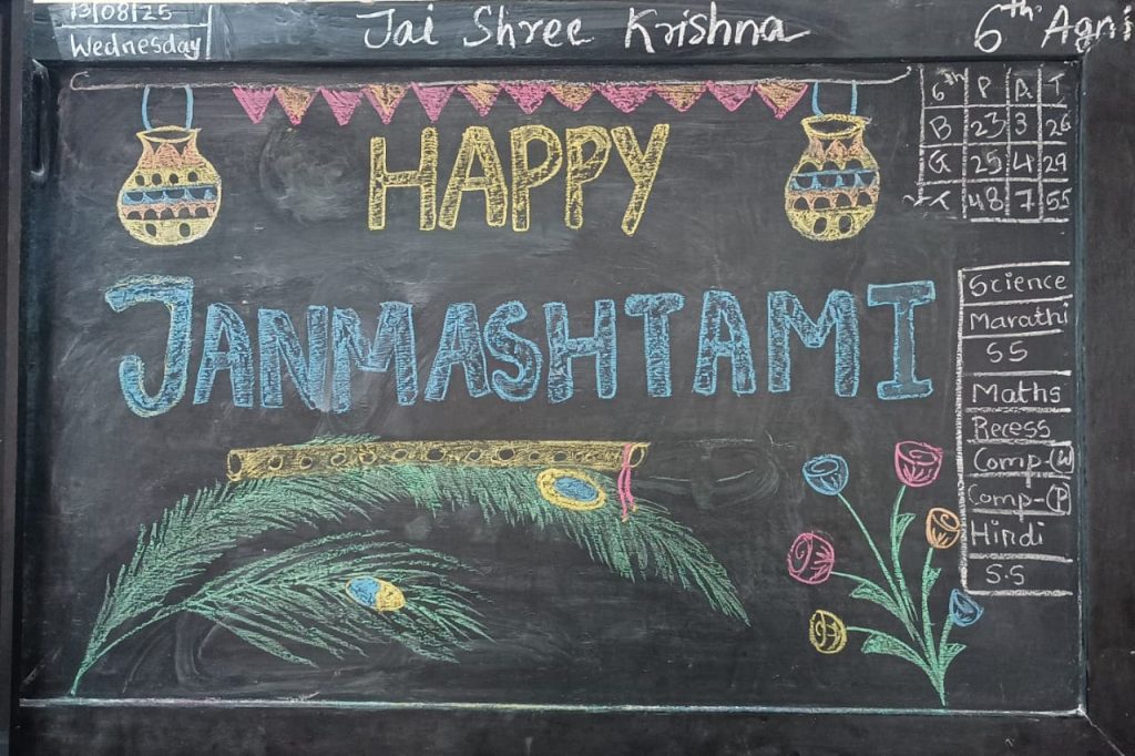 Janmashtami, the birth anniversary of Lord Krishna, was celebrated with great joy and devotion. The celebration began with a special assembly where students presented speeches and songs depicting the life and teachings of Lord Krishna.